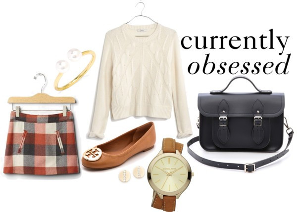 When I first fell upon this skirt, I knew I had to have it. It's perfect for the season, and it's right up my alley (hello, wool mini... did I mention it's plaid?). I started styling it immediately and now I'm addicted to some of the perfect products in this outfit. Those earrings? Need. That navy satchel? Gorgeous.
