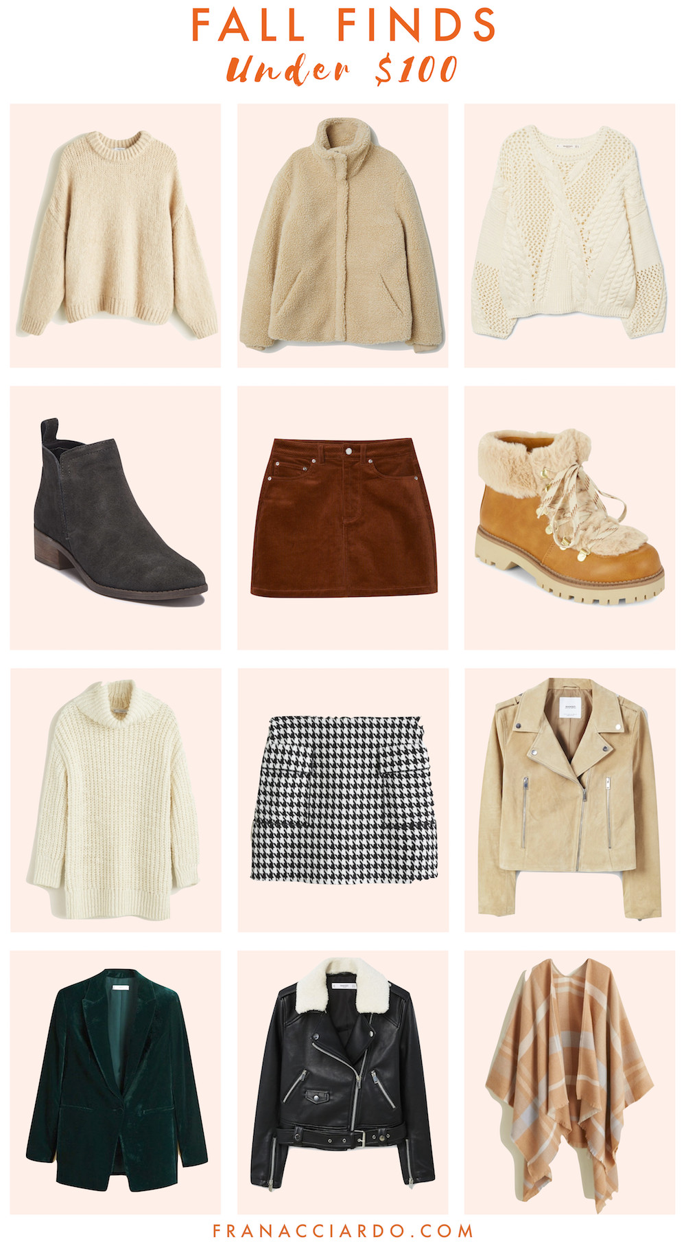 When it comes to shopping for fall clothes, I have an uncontrollable habit consisting of finding cozy pieces, adding them to my cart, and inevitably spending far too much money on sweaters, boots, and jackets that I don't necessarily need (or at least, that's what my mom tells me!). Because fall shopping is so addicting, I rounded up some pieces on my current wishlist that are all under $100 so we can shop for fall together without breaking the bank!